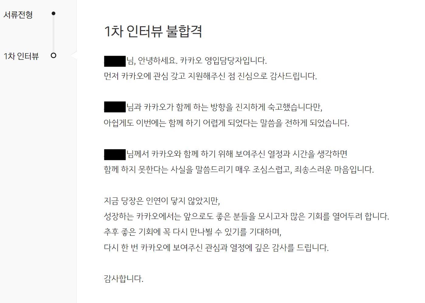 그래도 나름 만족스러운 결과라고 생각했던 이유가 우선 카카오 코테+서류 합격이었습니다. 학기 초에 코테 준비가 잘 되어있지 않을 때 쳤던 코테인데도 만족스러운 결과가 나왔고, 서류도 합격을 해서 면접까지 경험해볼 수 있었다는 점에서 만족스러웠습니다.