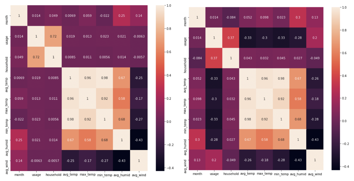 그래도 우선 이 데이터들과 기상청에서 제공해주는 과거 기상 정보들로 필요한 데이터들을 전처리해주고, 해당 데이터들간의 상관 관계를 비교하여 학습 데이터로 사용했다.
