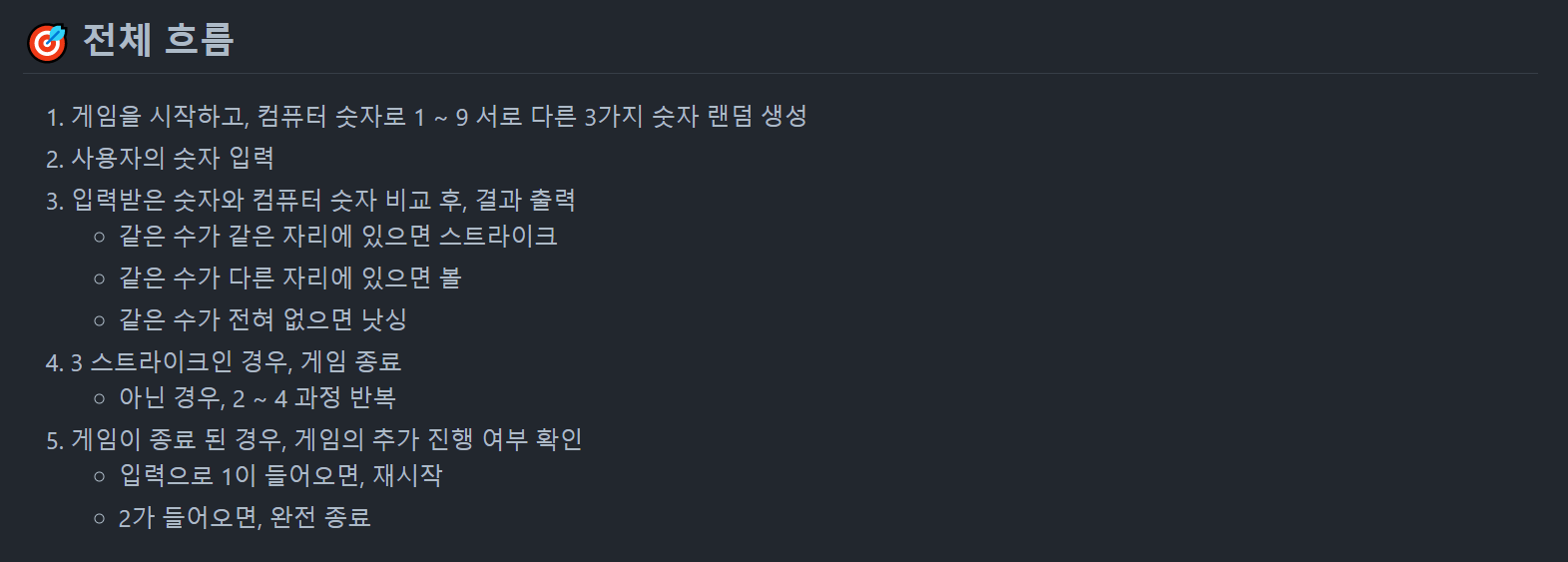 결과를 출력한다. - 이 같은 과정을 반복해 컴퓨터가 선택한 3개의 숫자를 모두 맞히면 게임이 종료된다.
