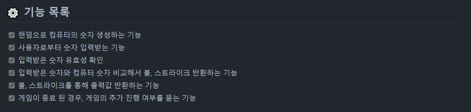 하지만 이번 2주차 미션은 숫자 야구라는 하나의 게임을 구현하는 미션이어서 기능을 분리하는 것에 보다 집중했다.